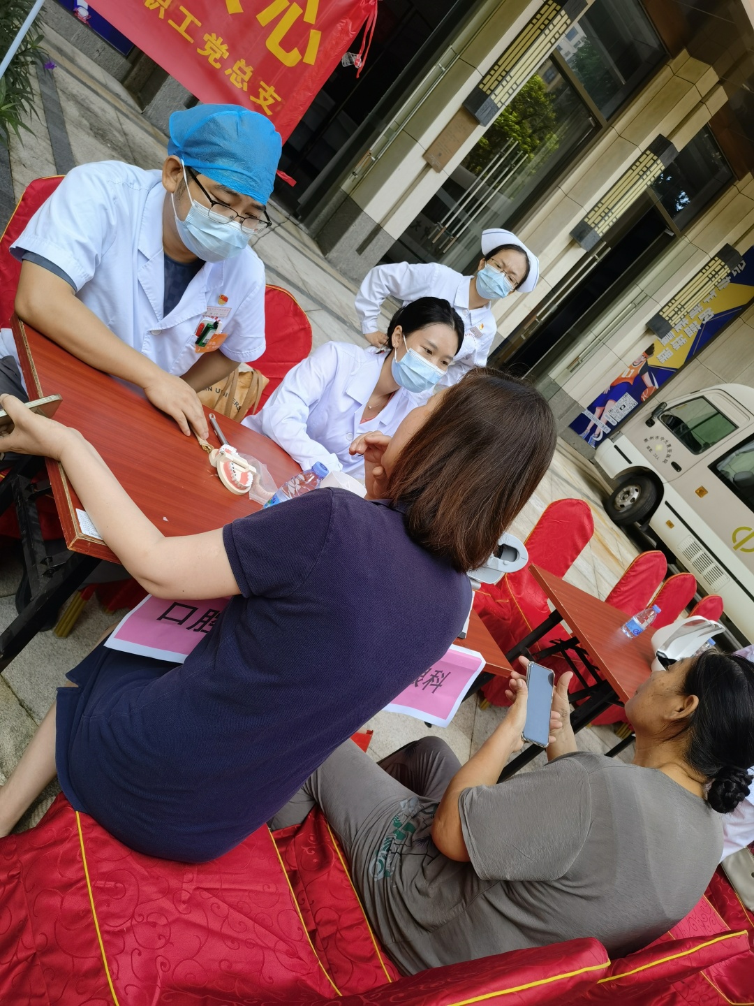 在爱群社区,外科教职工党支部党员为前来的居民群众进行健康检查,让居民及时了解自己的身体状况,做好相关疾病的预防;门诊科室教职工党支部党员把眼底检查仪器带到活动现场,为居民免费做糖尿病眼底筛查;药剂教职工党支部党员们对居民常见病用药进行了专业评估并给予合理建议,解决居民在服药中遇到的用药问题。