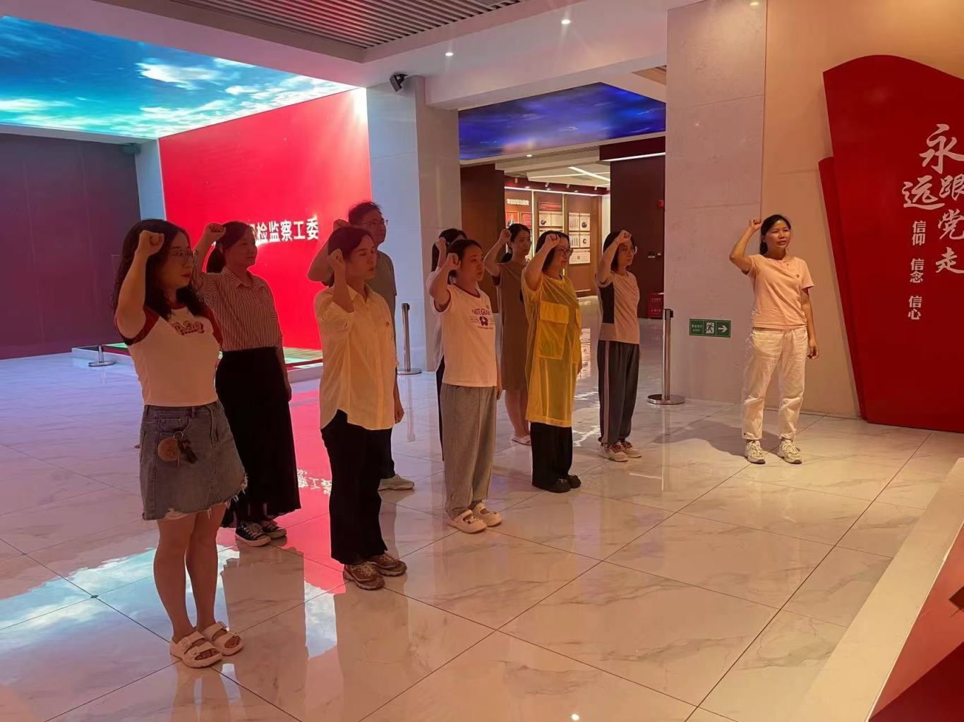 全体党员同志在庄严肃穆的氛围中重温入党誓词,共同观看了廉洁教育片。在基地讲解员的指引下,依次参观了“从严治党”“正风肃纪”“警钟长鸣”“防微杜渐”“崇廉尚德”“海韵清风”六大展厅。展厅内展示了近年来发生的党员干部违法违纪典型案例,具有极强的警示震撼作用,提醒每一位党员干部要时刻绷紧廉洁自律这根弦,坚决不踩“红线”、不越“底线”,营造风清气正的医疗行业生态。