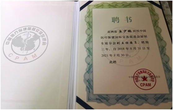 丘少鹏教授当选为中国医疗保健国际交流促进会泌尿生殖分会副主任委员